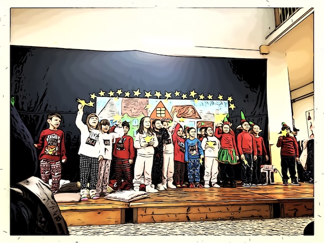 Abbiamo messo in scena uno “spettacolo teatrale” con protagonisti bambini ed elfi che portano in regalo a ogni bambino un’emozione, per scoprire poi alla fine che è proprio quella giusta, cioè quella che il bambino stava aspettando di scoprire. Per condividere con noi parole ed emozioni, basta che tu e chi ci legge guardiate le foto della nostra esibizione natalizia.